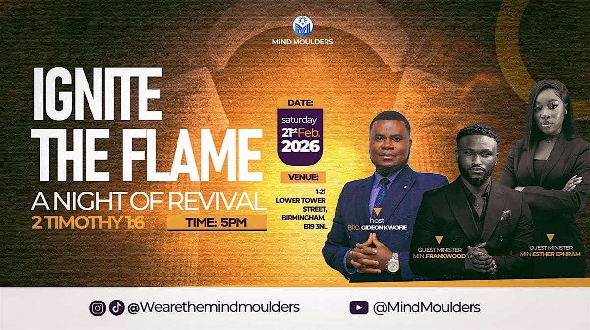 Join us for IGNITE THE FLAME, a powerful night of worship and prayer hosted by Mind Moulders. This is more than an event—it’s a call to renewal, a moment to encounter God’s presence, and a space for hearts to be stirred afresh.