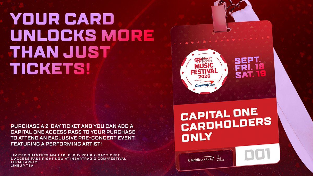 iHeartRadio Music Festival - 2-Day Pass at T-Mobile Arenaπ Step into a world of wonder at iHeartRadio Music Festival 2026 - 2-Day Pass Tickets, where extraordinary moments await! ποΈ Located at T-Mobile Arena in dynamic Las Vegas, NV, this event will become the talk of the town. π