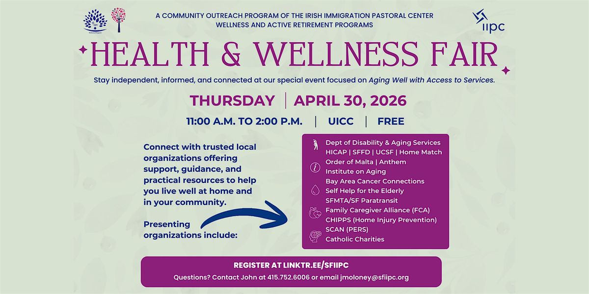 The Irish Immigration Pastoral Center’s Wellness and ARC Program invites you to this special event focused on Aging Well with Access to Services.