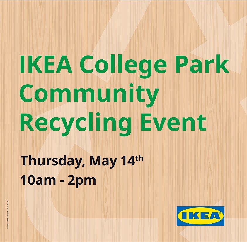 Join the IKEA for Business team at College Park for a day dedicated to recycling! All IKEA Business Network and IKEA Family members are invited. Don't miss this chance to support sustainability! Taking place in the parking lot, near the main store entrance.