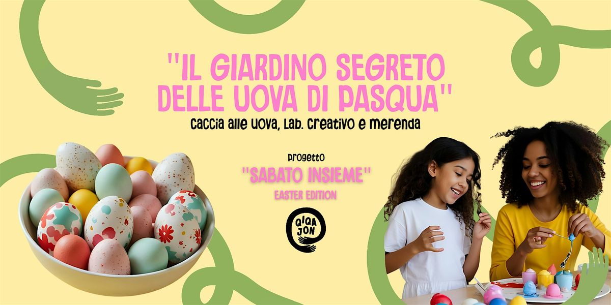 Il progetto “Sabato Insieme” di Qiqajon invita tutte le famiglie con bambini dai 3 ai 10 anni a vivere un’avventura piena di sorrisi, colori e meraviglia! Nel giardino dei sogni prenderà vita una caccia alle uova ricca di sorprese: piccoli esploratori con occhi curiosi e cestini tra le mani si metteranno alla ricerca dei tesori nascosti della primavera… Dopo la grande avventura, spazio alla fantasia con un laboratorio creativo dove mani e cuori daranno forma a piccole opere ispirate alla Pasqua — tra colori, carta, nastri e tanta voglia di stupirsi. E per concludere in dolcezza, una merenda insieme, per gustare il piacere delle cose semplici e condividere un momento di gioia e leggerezza con nuove e vecchie amicizie. Sarà un pomeriggio per ridere, creare e sentirsi parte di qualcosa di bello: quella magia che nasce quando si sta bene INSIEME.