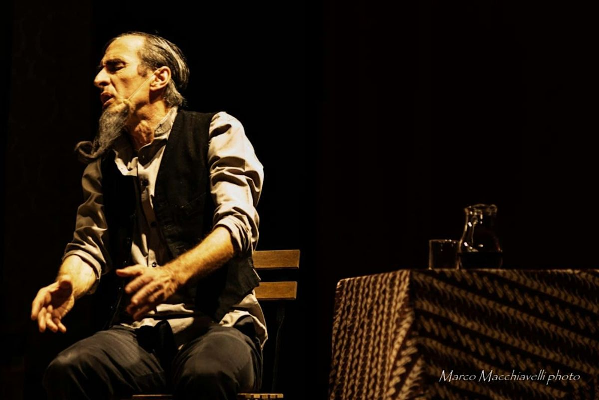 In "il vino e suo figlio" protagonista assoluto è – come da titolo – il vino, il suo valore ‘mitico e sacro’, la sua paradossale congiunzione tra ‘basso corporeo’ e filosofia del palato e della vita. Quando un giovane diventa uomo ? Nella nostra società sono ormai assenti i riti di trasformazione dall’adolescenza all’età adulta, quelli che venivano chiamati ‘riti di iniziazione’; ma il primo bicchiere di vino è ancora oggi testimonianza di una prova di passaggio: il fanciullo passa progressivamente dal latte materno, all’acqua , alla bevanda dei ‘grandi’. Il monologo, liberamente tratto da un testo scritto nel 1982 da Mario Brelich – ‘Il Navigatore del Diluvio’ – ripercorre, attraverso il racconto di Sem, figlio primogenito, le tappe misteriose della scoperta del vino da parte di Noè e, tramite quello, del suo rapporto strettamente personale con Dio, un J a vhè molto complice e ‘umano’.