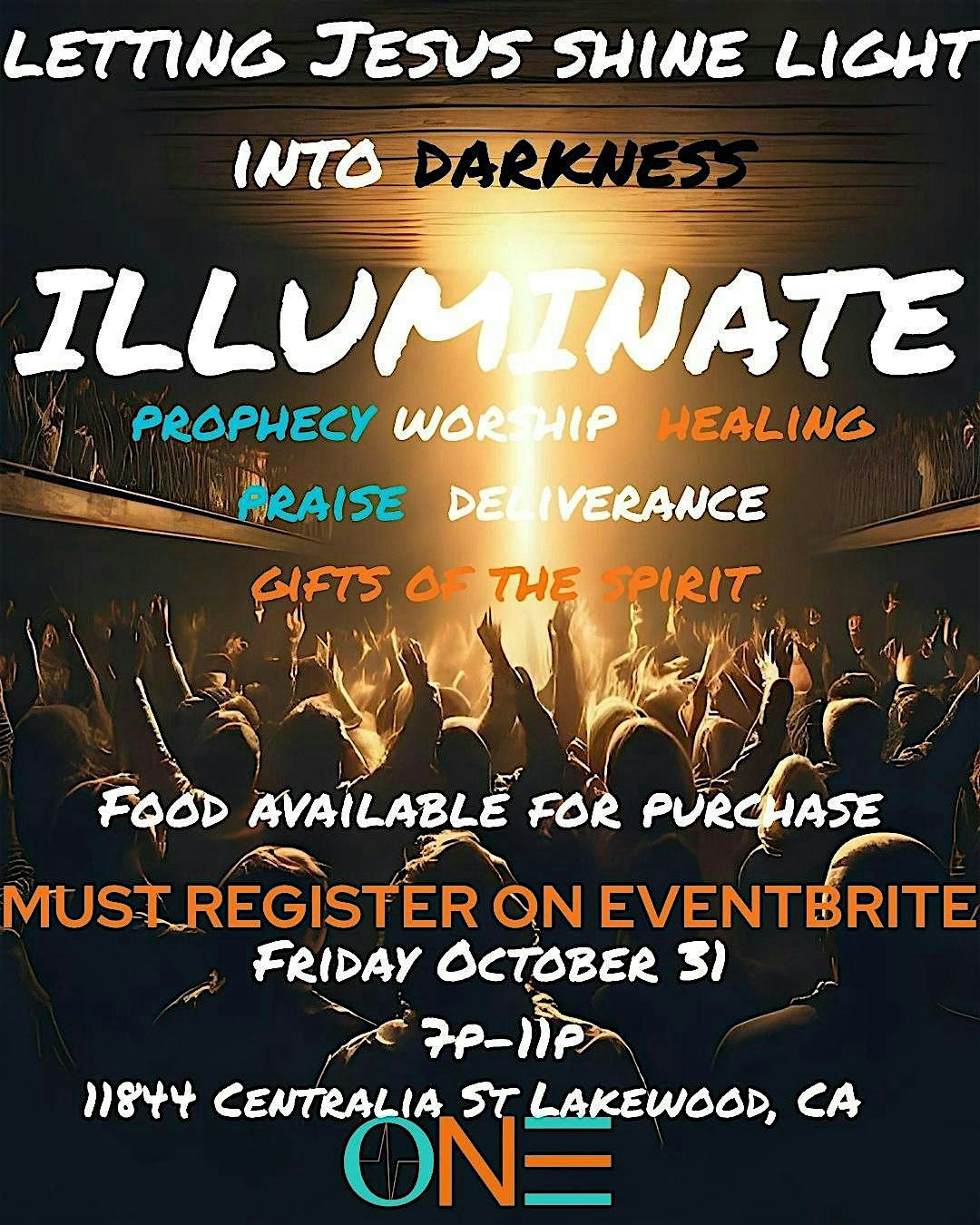 Come join us at One Church Lakewood for our 3rd annual Illuminate where we will worship and praise as we invite King Jesus in to light up the darkness on the darkest night of the year. Expect high praise, prayers of healing and deliverance as the Spirit moves and a seeking of the spirit for words of knowledge and/or prophecy. We do not know God's exact plans for the night but we will seek Him, ask and expect Him to show up and show out.