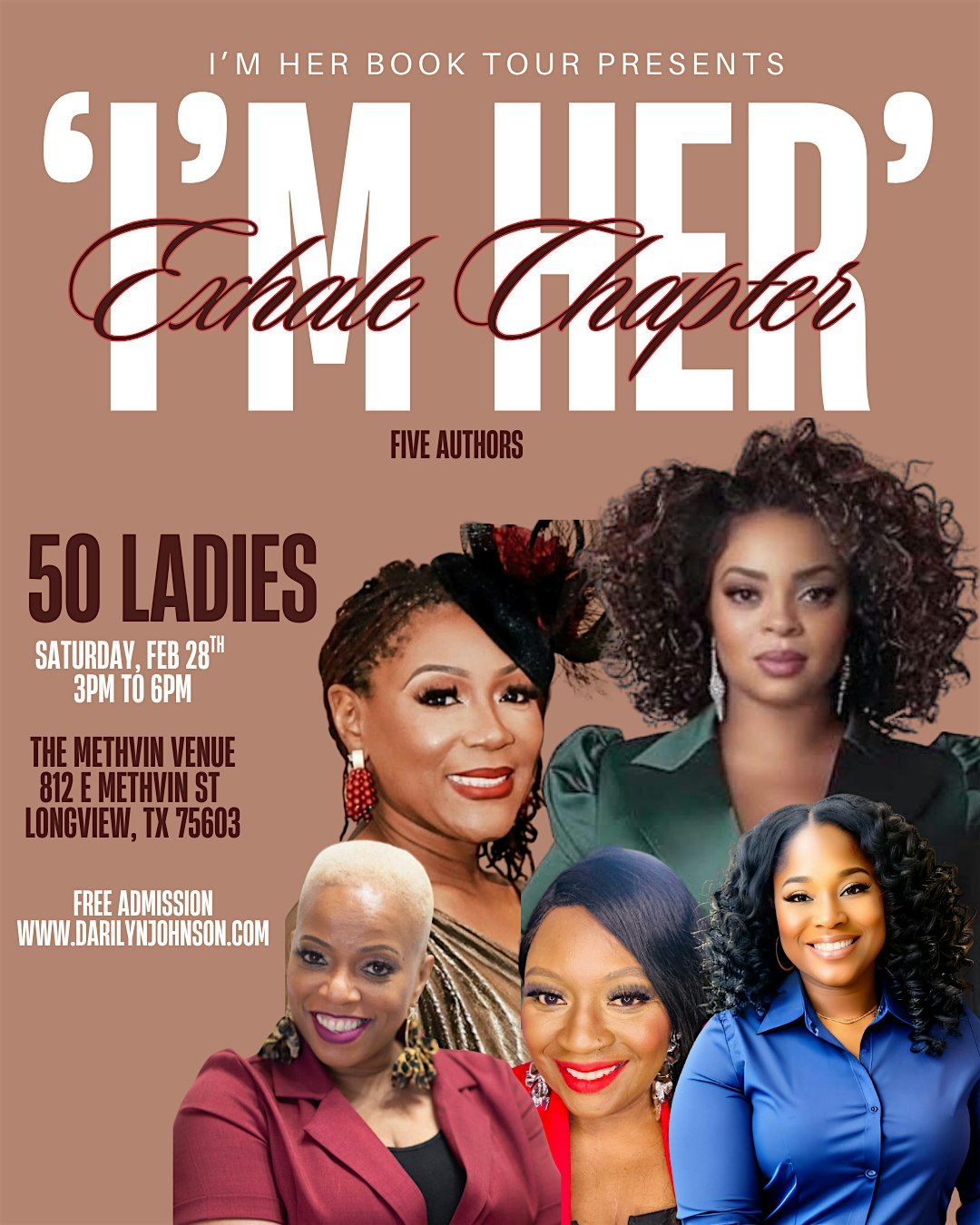 The I’m HER Book Tour continues with the The Exhale Chapter, featuring five powerful authors sharing wisdom, lived experiences, and transformational insights. This curated gathering of fifty women creates a safe and intentional space to release, reflect, and rise—together.