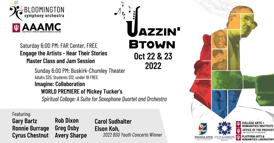 As a result, Tucker stored this masterpiece in his home for forty-plus years, where it would seemingly never be heard by anyone. Speaking with AAAMC Director Dr. Tyron Cooper, the eighty-one-year-old composer lamented, “I don’t think I will ever hear this piece performed in my lifetime.” In 2021, Tucker and his wife Sheila donated the only hand-written copy of Spiritual Collage, along with numerous original musical scores, manuscripts, photos, letters, audio and video recordings and other materials, establishing the Mickey Tucker collection at AAAMC. Then, Cooper in collaboration with the BSO’s Artistic Director and Conductor Alejandro Gómez Guillén, formed a partnership between their respective organizations to normalize musical works by Black composers in Bloomington Symphony Orchestra’s concert seasons, where recently BSO has presented the Indiana premiere of Florence Price's Symphony no. 4, and Dawn Norfleet's Seed. In keeping with this vision, the BSO will present the world premiere of Tucker’s Spiritual Collage at the Buskirk Chumley Theater on Sunday, October 23rd at 6pm EDT. Joining the BSO is a lineup of internationally acclaimed jazz greats including pianist Cyrus Chestnut, bassist Avery Sharpe, drummer Ronnie Burrage with saxophonists Gary Bartz, Greg Osby, Carol Sudhalter, and Indianapolis native Rob Dixon.