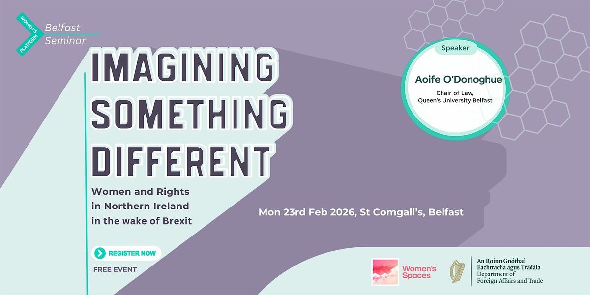 Join Women's Platform as part of our Women's Spaces programme for an in person seminar with Professor Aoife O'Donoghue of Queen's University School of Law. She is an expert in constitutionalism, international law, rights and legal feminism. She also works extensively on Brexit and Northern Ireland, and particularly its impact on rights. The seminar will include a presentation followed by discussion around the impact of brexit on the rights of women in Northern Ireland.