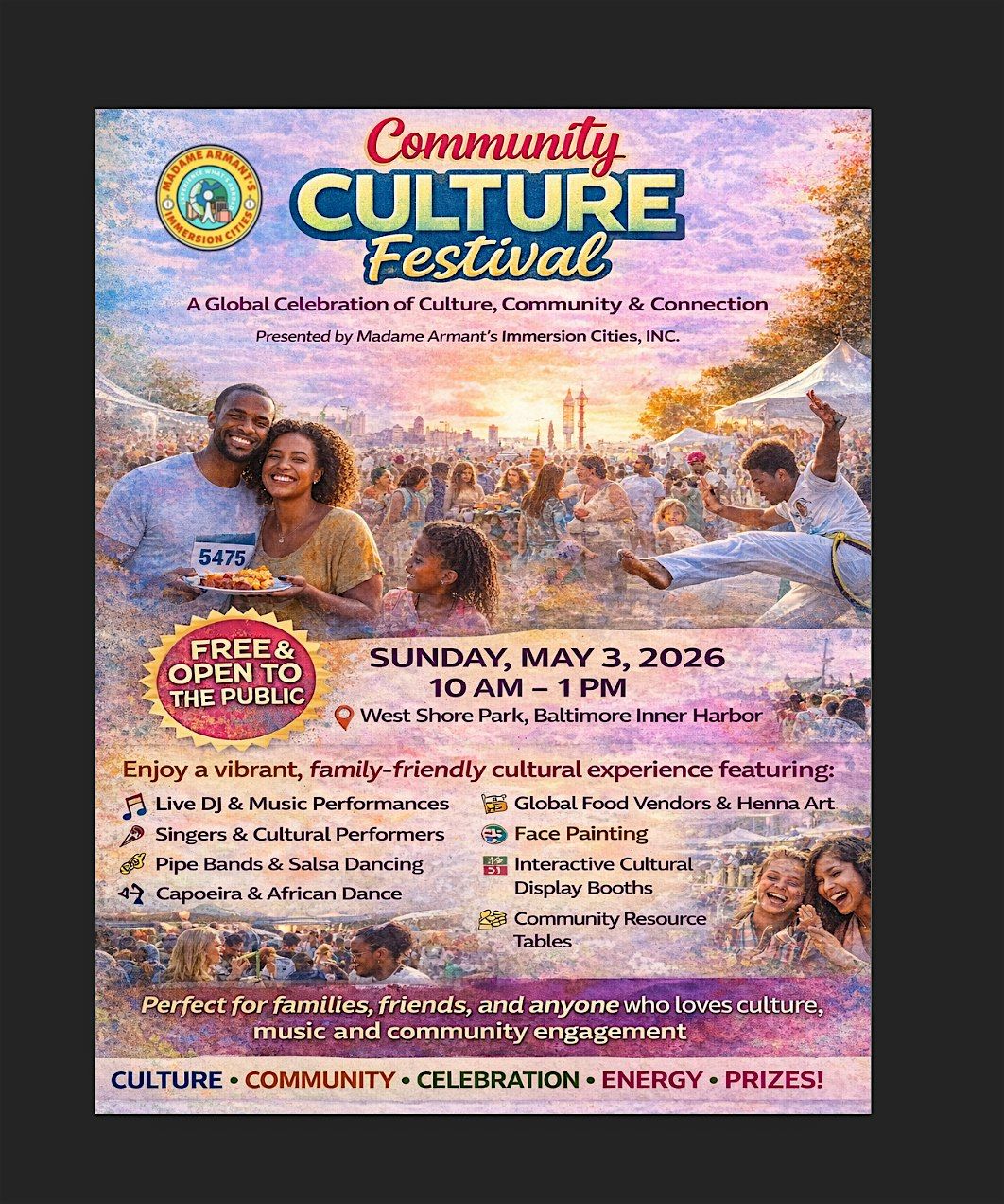 Join us for a day of unity, culture, and community at the Immersion Cities Unity Walk 5K & Cultural Festival! π