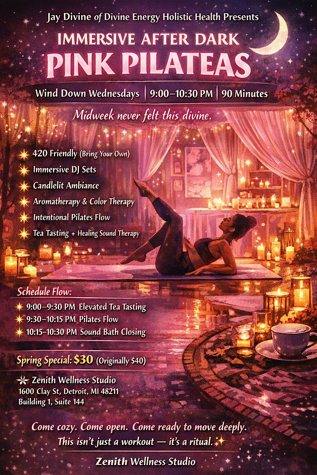 Step into a candlelit sanctuary where movement meets mood. This immersive mat Pilates experience is designed to release tension, reconnect you to your body, and reset your nervous system β all inside a dreamy pink-hued Zen oasis.