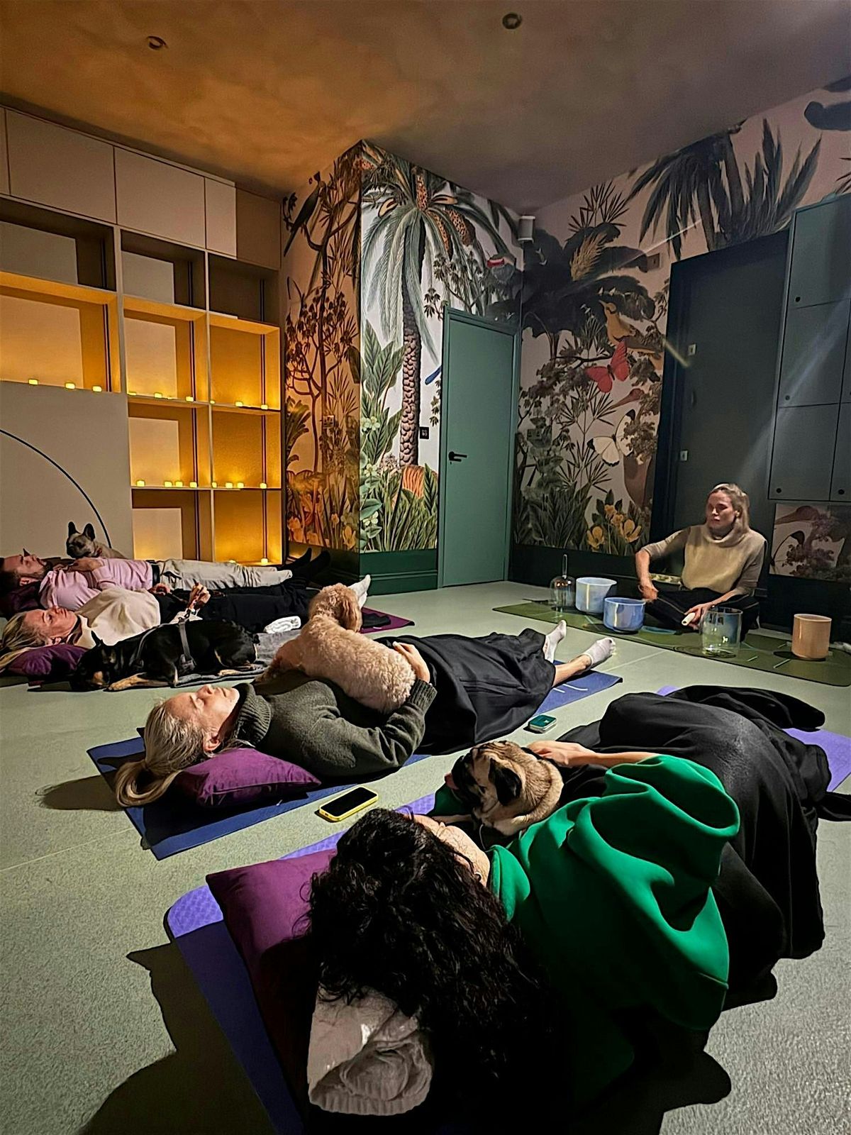 Sound vibrations from instruments, music, tones and other instruments that omit sonic vibrations relax the parasympathetic system in humans and dogs. These feelings of slowing down the brain activity have a deep calming affect long after the actual sound bath. Leaving both you and your dog feeling rejuvenated, energised and joyful.
