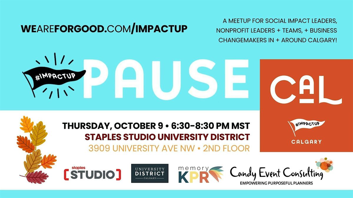 You’re invited to the Calgary gathering of ImpactUp: Pause, a quarterly meetup for changemakers by We Are For Good.