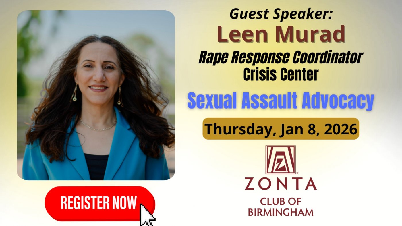 Join the Zonta Club of Birmingham for our first meeting of 2026, focused on The Importance of Sexual Assault Advocacy. January is also Human Trafficking Awareness Month, making this discussion especially timely and aligned with Zonta’s ongoing advocacy efforts.