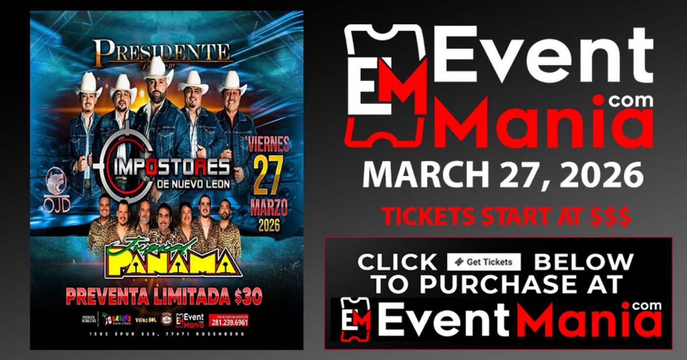 Compra tus boletos y mesas aqui: https://eventmania.com/events/impostores-de-nuevo-leon-y-tropical-panama-rosenberg-tx-2026-03-27/jo8q/seat