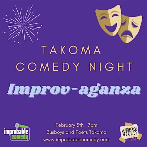 Improv-aganza is part of Improbable's series, Takoma Comedy Night, at Busboys and Poets Takoma. Each month we bring a great chance for laughs and fun for the community. It feels good to laugh and we promise to deliver. Join us at one of our upcoming shows: