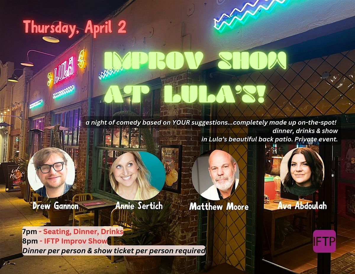 Improv for the People (IFTP) is a thriving improv studio with improv classes, shows, and more at our theater in West LA. We are thrilled to be at Lula's for this special event.