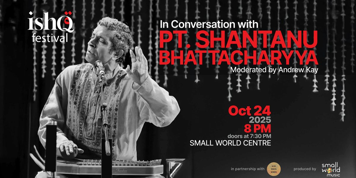 calls the audience to join in an intimate discussion with renowned vocalist Pandit Shantanu Bhattacharyya, moderated by musician and educator Andrew Kay.