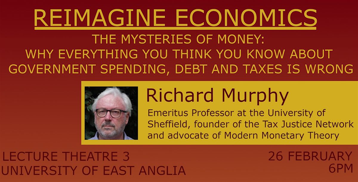 Emeritus Professor at the University of Sheffield, founder of the Tax Justice Network and advocate of Modern Monetary Theory, Richard Murphy will debunk common myths about money, government spending, debt and taxes. He'll talk about why austerity is unnecessary, inequality is a political choice and why the UK economy doesn't work for most people and he'll explain how the power relationships that alter the allocation of resources in our society are created, how they can be changed and how we can create a better world. Come along and have all your questions about money and the economy answered