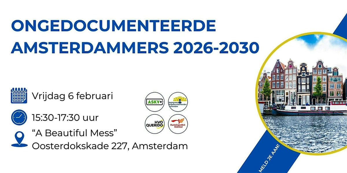 ASKV, HVO-Querido, Regiegroep Ongedocumenteerden Amsterdam en VluchtelingenWerk Amsterdam nodigen jullie graag uit voor een bijeenkomst met raadsleden om te spreken over de recente politieke ontwikkelingen voor ongedocumenteerde Amsterdammers en wat hun rol kan zijn in de ondersteuning van deze groep. De nieuwe periode van de gemeenteraad, 2026-2030 zal een politiek uitdagende periode worden waarbij het belangrijk zal zijn er met elkaar te staan voor de rechten van ongedocumenteerden.