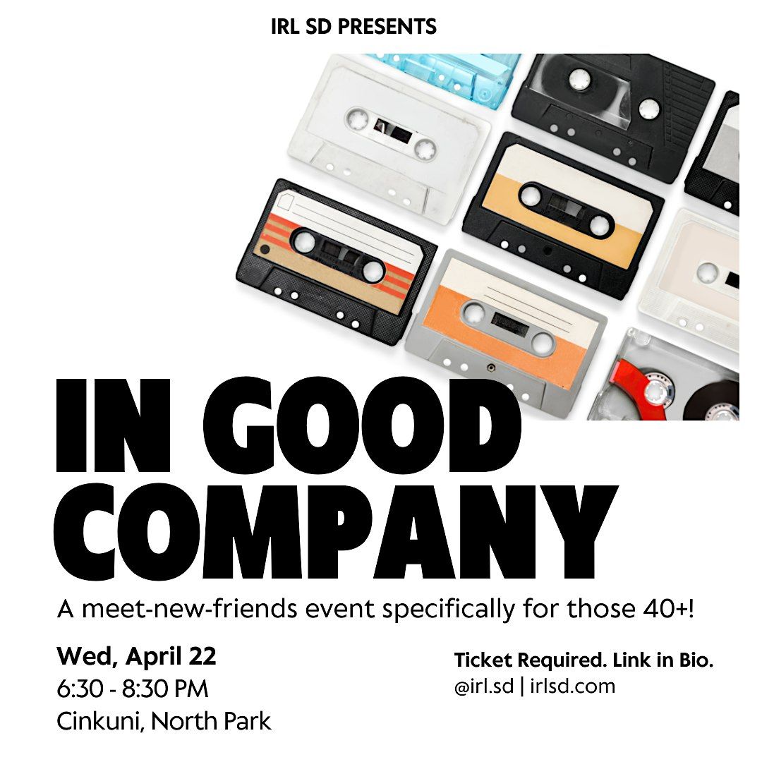 In Good Company is a meet-new-friends event designed specifically for those 40+ who are looking to build genuine connections and expand their community — without the pressure of dating or awkward networking!