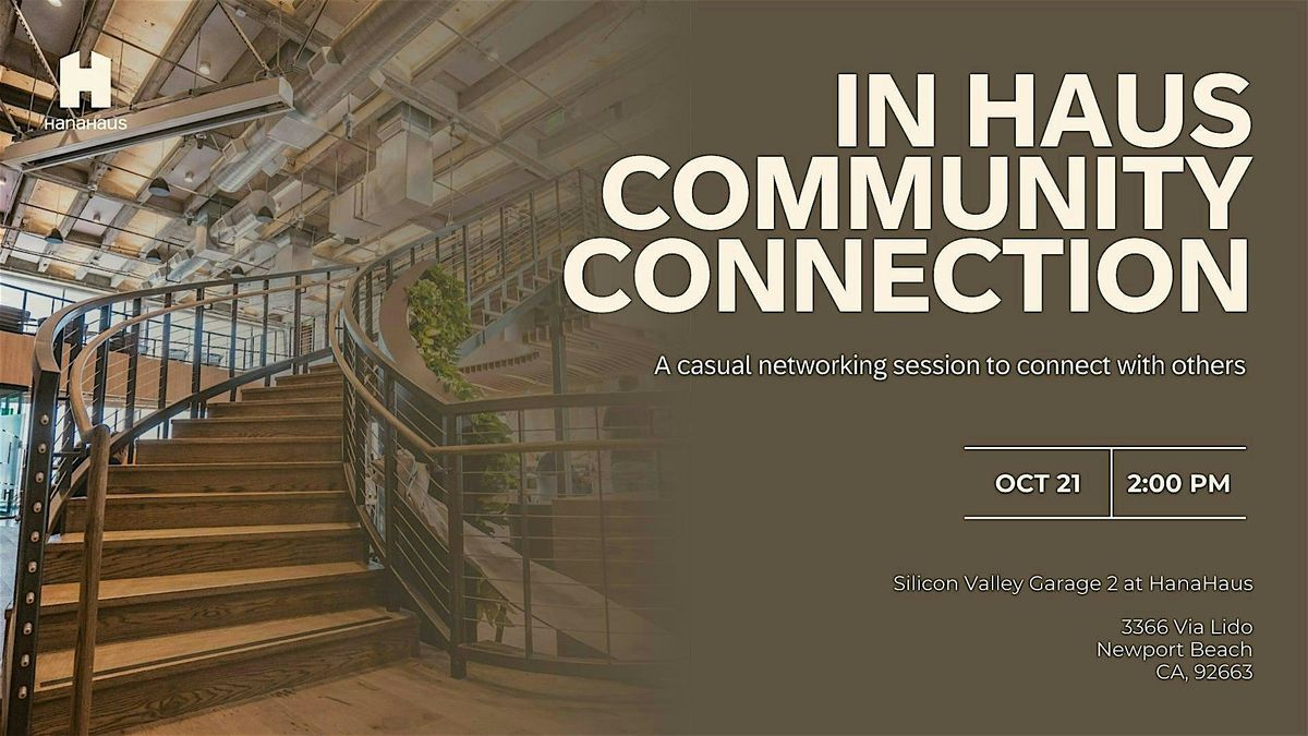 Join us for our upcoming of In Haus Community Connection, a beloved informal networking opoortunity at HanaHaus. Immerse yourself in the vibrant atmosphere as you mix and mingle with others.