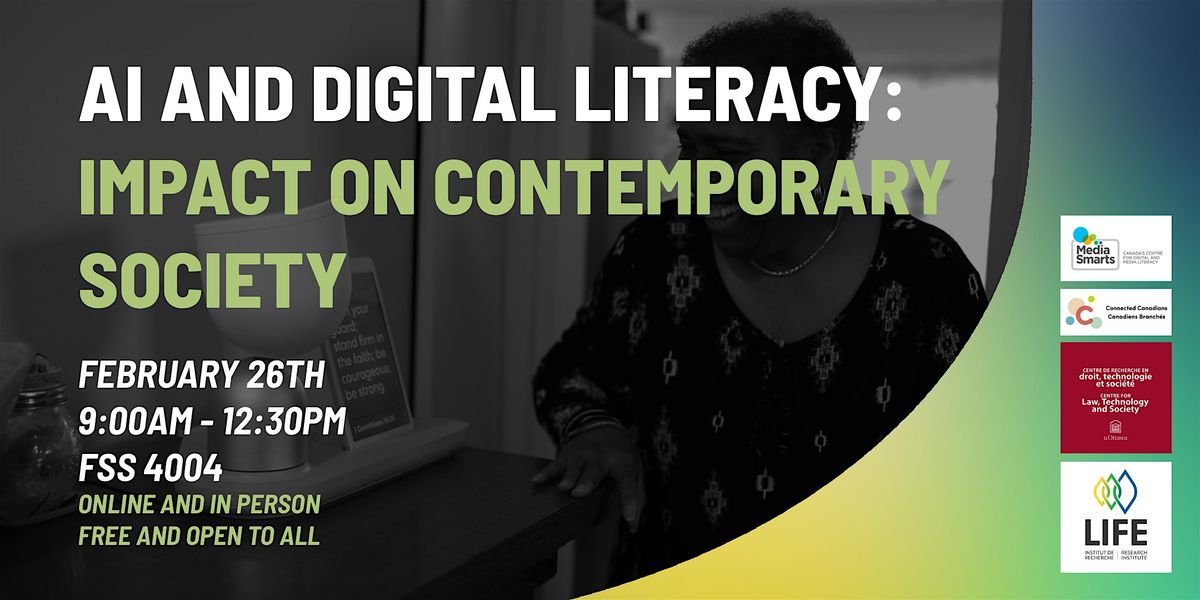 In collaboration with uOttawa’s Centre for Law, Technology and Society, Connected Canadians and MediaSmarts on February 26th we will hold a half-day seminar on Digital Literacy, particularly on Artificial Intelligence, its misconceptions and consequences. As AI continues to rapidly shape the way we live, work, and connect, it’s increasingly important to reflect on how these technologies impact the different sectors of our society. Framing it as a lifespan issue, this seminar will hopefully create a space for learning, discussion and thoughtful conversation around digital inclusion, ethics, and accessibility. We hope to see many of you there!