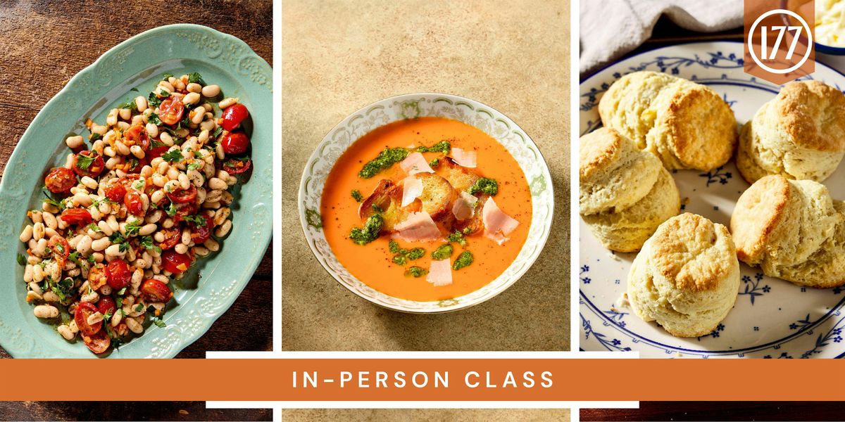 Some stale bread. A stick of butter. The end of a carton of milk. A handful of spices. Two cans of beans. Tell us: can you make a great dinner—not just an it’ll-do dinner, but a company-worthy, get-out-the-cloth-napkins kind of dinner—with those ingredients? At Milk Street, pantry cooking is our favorite thing. Because anybody can make a sirloin steak taste good, but it takes true culinary chops to achieve bold flavor, great texture and careful balance without stepping another foot in the grocery store. Join Milk Street’s April Dodd for an in-person class at Milk Street where you’ll learn the techniques we employ to get the maximum value out of every ingredient, every time. You’ll make a Romanian soup that we lovingly call “soup from nothing” at Milk Street, because it magically transforms little more than spices and aromatics into a meal that’s hearty and nourishing. We pair it with a no-nonsense batch of quick-baking biscuits that we are willing to bet you have all the ingredients for right now. And we’ll cover three techniques that are infinitely versatile: the crouton fried with a DIY spiced blend, the art of marinating beans and the magic of improv compound butter. This is the class for you if you love flavor, hate food waste and sometimes just don’t want to go to the grocery store.