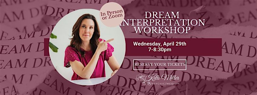 In this fascinating workshop, Psychic/Medium Kelli Miller will teach you how to better understand the messages within your dreams and the symbols your subconscious uses to communicate important information.