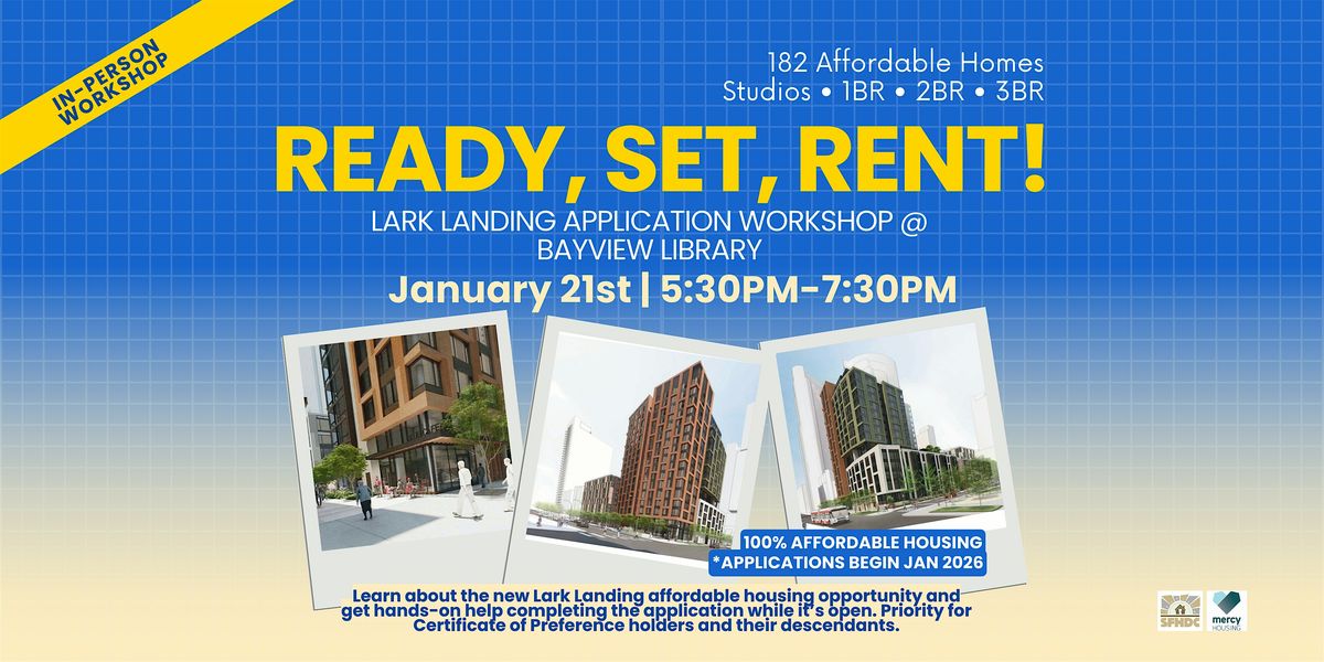 This special Ready-Set-Rent workshop is designed specifically for Certificate of Preference (COP) holders and their descendants, who receive priority in the housing lottery for Lark Landing — Mercy Housing’s upcoming 100% affordable development in Transbay.
