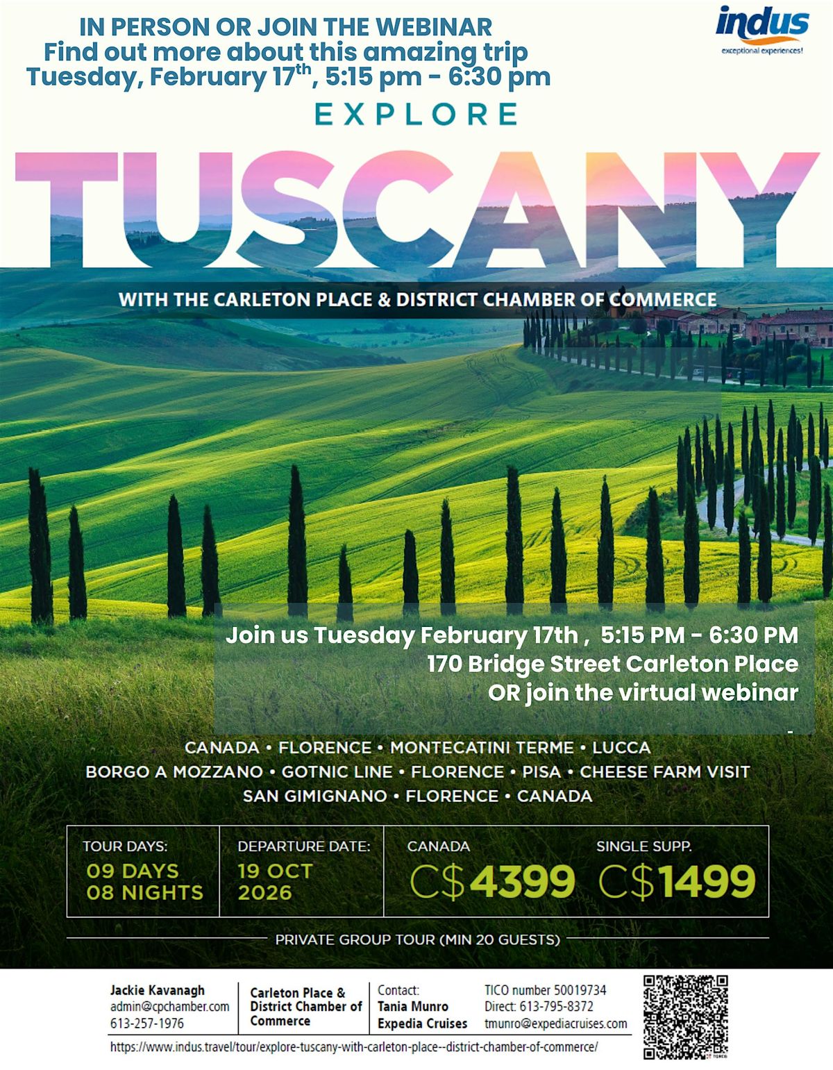 In person or Webinar Info Session - EXPLORE TUSCANY 2026
