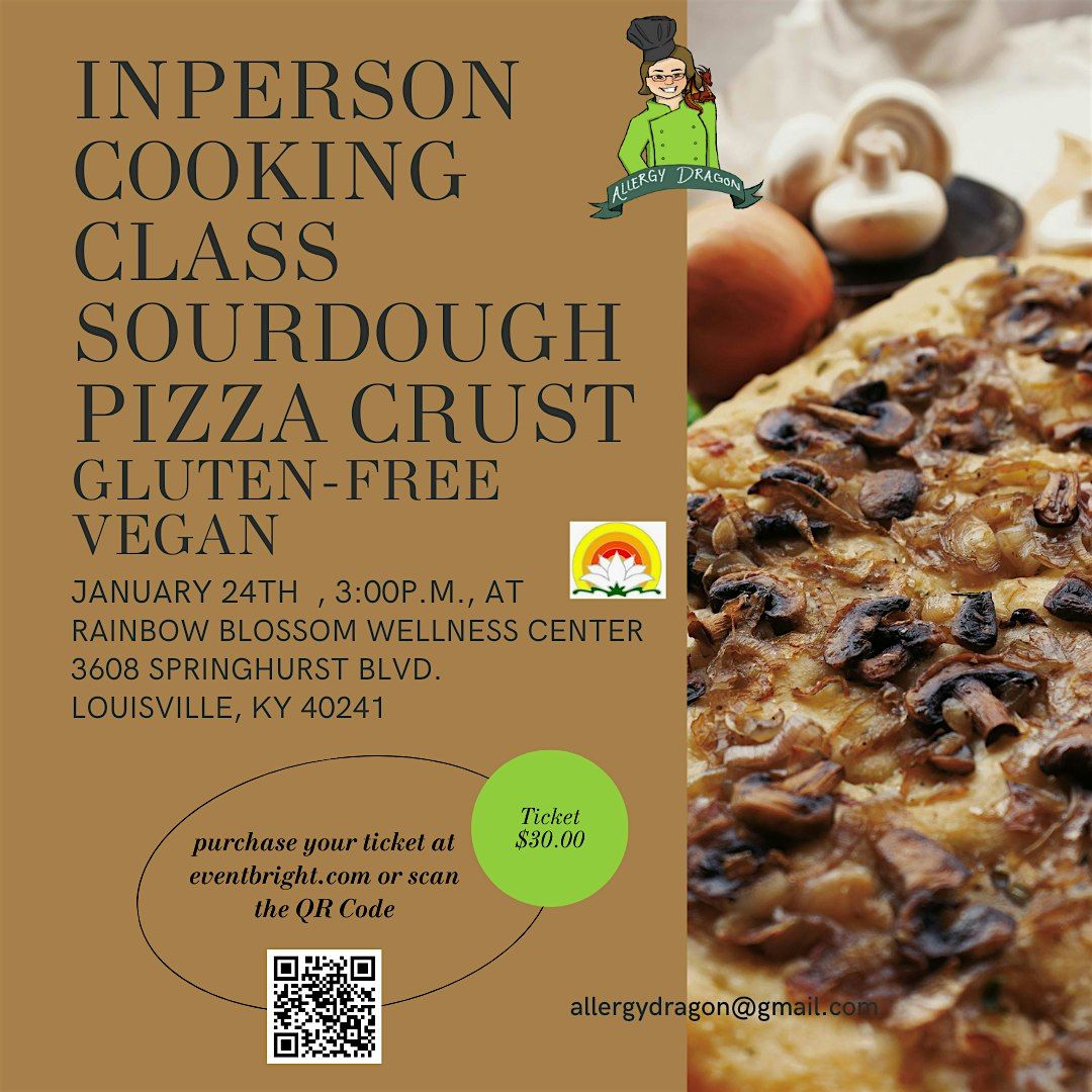 Join us in person for the Sourdough Pizza Crust/Focaccia Gluten-Free & Vegan Cooking Class. Whether you're a kitchen newbie or a pro, this demo-style class will teach you how to make delicious gluten-free and vegan sourdough pizza crust and tasty, healthy focaccia. Come hungry for learning and leave with new skills and yummy recipes!