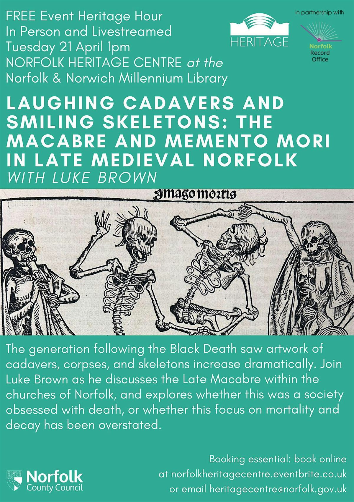 The generation following the Black Death saw artwork of cadavers, corpses, and skeletons increase dramatically. Join Luke Brown as he discusses the Late Macabre within the churches of Norfolk, and explores whether this was a society obsessed with death, or whether this focus on mortality and decay has been overstated.