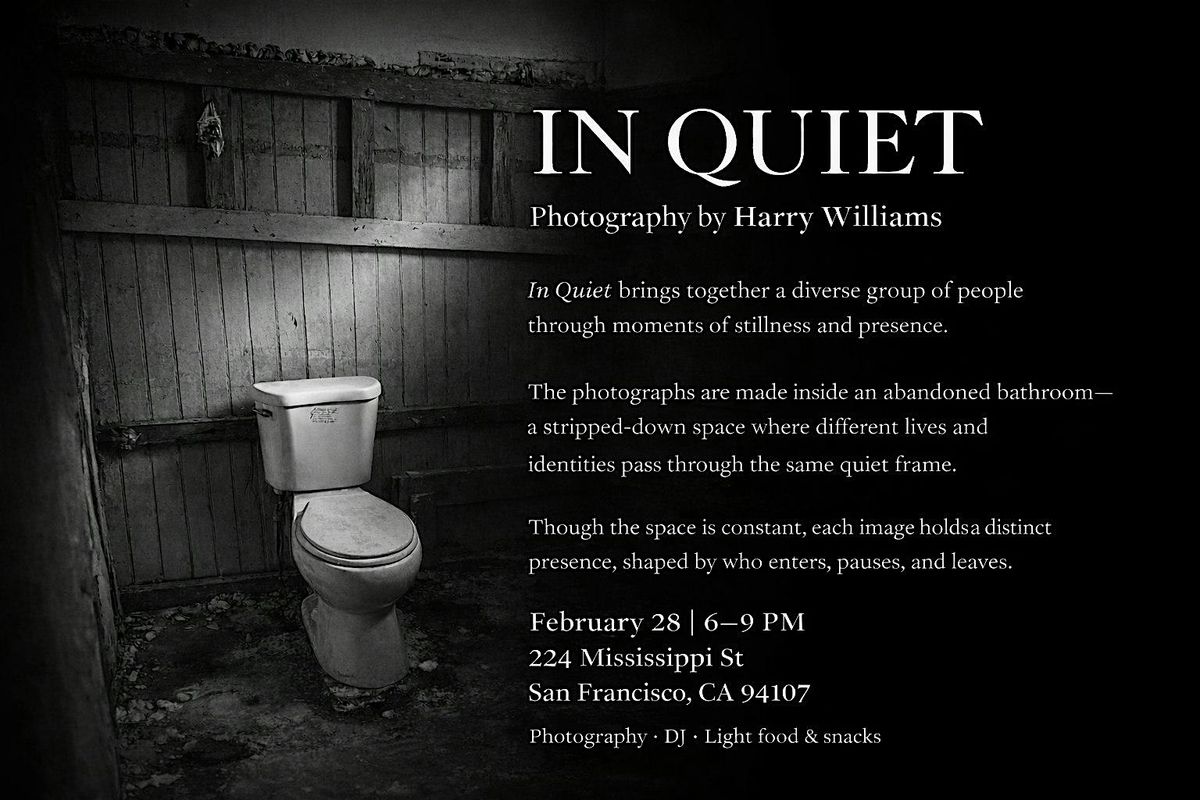 In Quiet is a quiet, intimate gathering centered around photography, sound, and shared space. Guests can expect black-and-white images, a DJ, and light food in a relaxed environment.