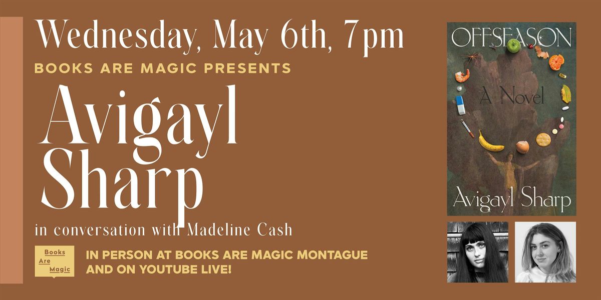 Avigayl Sharp is a writer from Chicago. Her fiction has appeared in The Paris Review, Granta, New England Review, and elsewhere. She holds an MFA from the Michener Center for Writers and is the recipient of a Pushcart Prize, the DISQUIET Literary Prize, and fellowships from Yaddo and the Fine Arts Work Center in Provincetown. Offseason is her first novel.