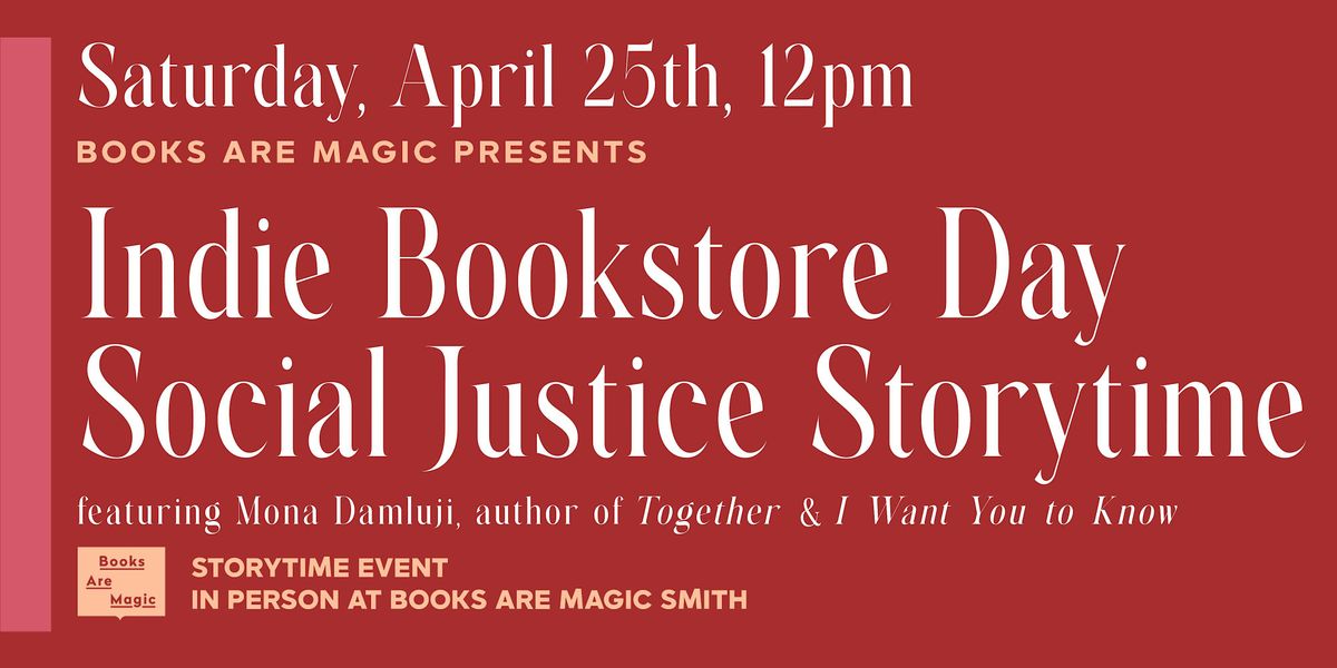 Indie Bookstore Day is here! Join Books Are Magic for a special social justice themed storytime, centered on uplifting our community and treating everyone with respect and empathy. This storytime is led by acclaimed author Mona Damluji, author of Together and I Want You to Know.