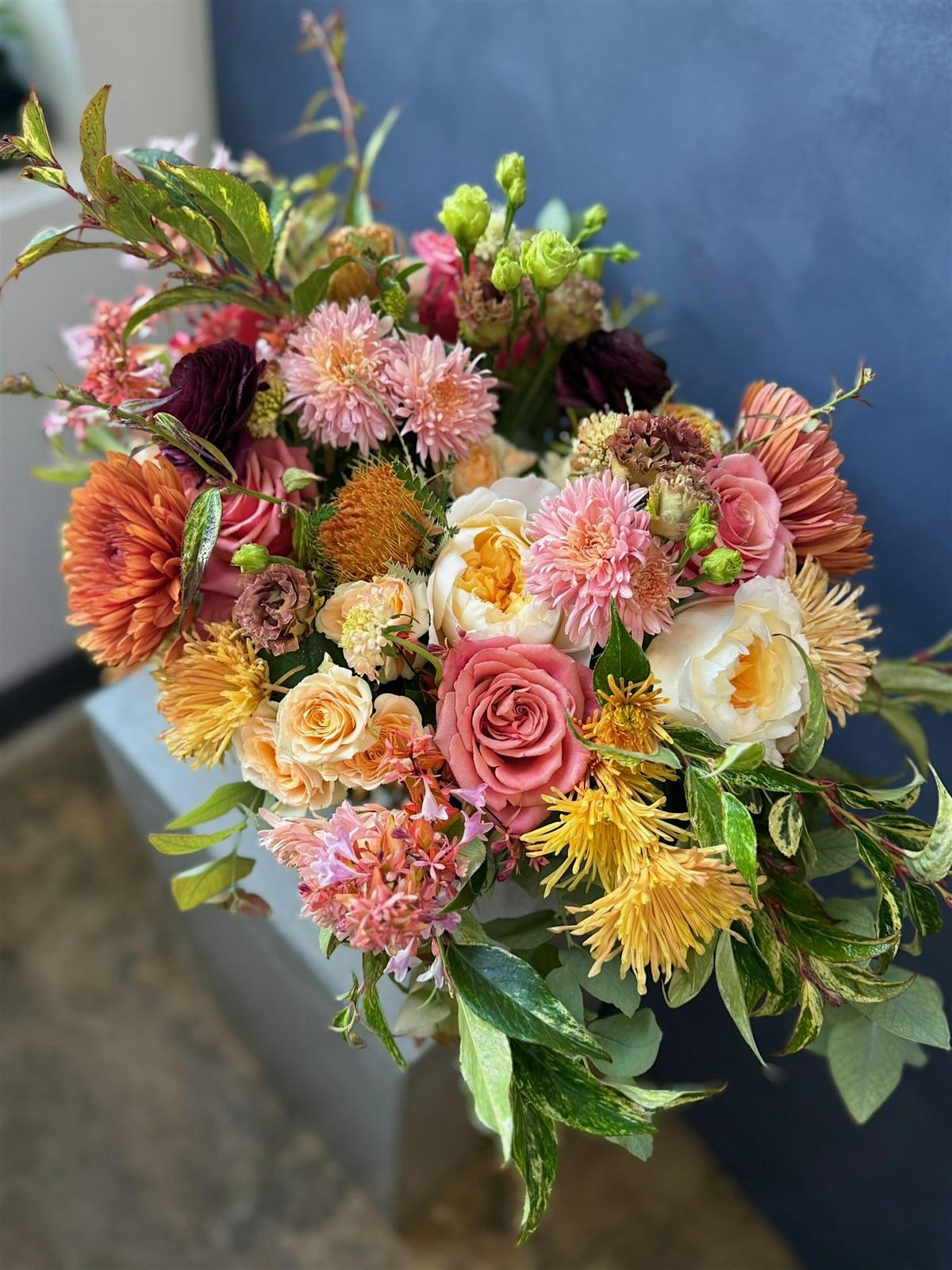 Each class revolves around a theme or type of flower. For example, ‘Peonies’ or ‘Jewel Toned Blooms’. The images on our website are representative of what a design might look like, but are not exact. In order to get you the most product, we hold off on ordering until a week before class to see what is available at the best price from our wholesalers. In classes that revolve around a certain flower, such as peonies, you can expect to be making a mixed bouquet highlighting that flower.