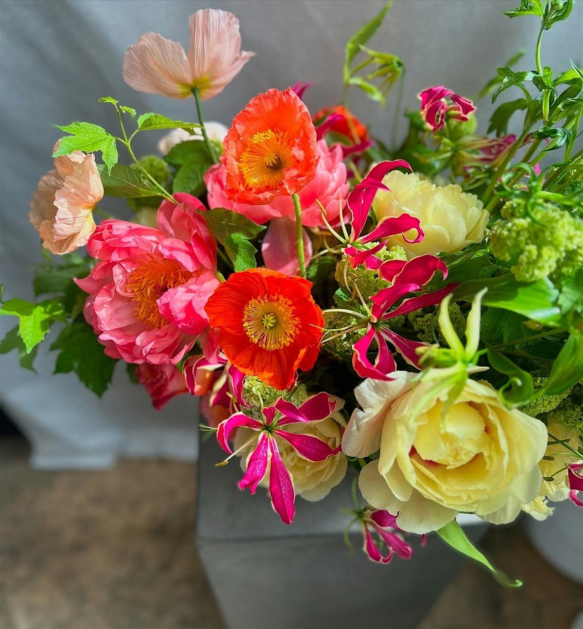Each class revolves around a theme or type of flower. For example, ‘Peonies’ or ‘Jewel Toned Blooms’. The images on our website are representative of what a design might look like, but are not exact. In order to get you the most product, we hold off on ordering until a week before class to see what is available at the best price from our wholesalers. In classes that revolve around a certain flower, such as peonies, you can expect to be making a mixed bouquet highlighting that flower.