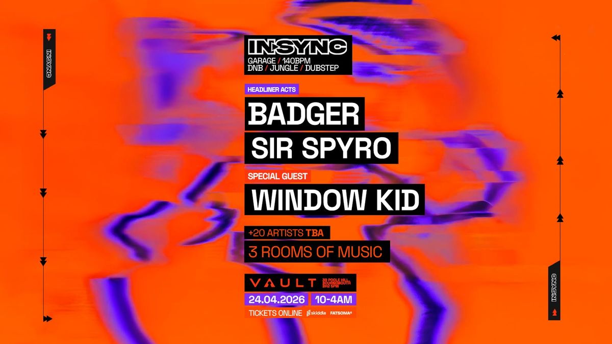 In:Sync: Badger + Window Kid + Sir SpyroΒ is coming to The Vault! π¦‘Β π¦ 3 Rooms of Music