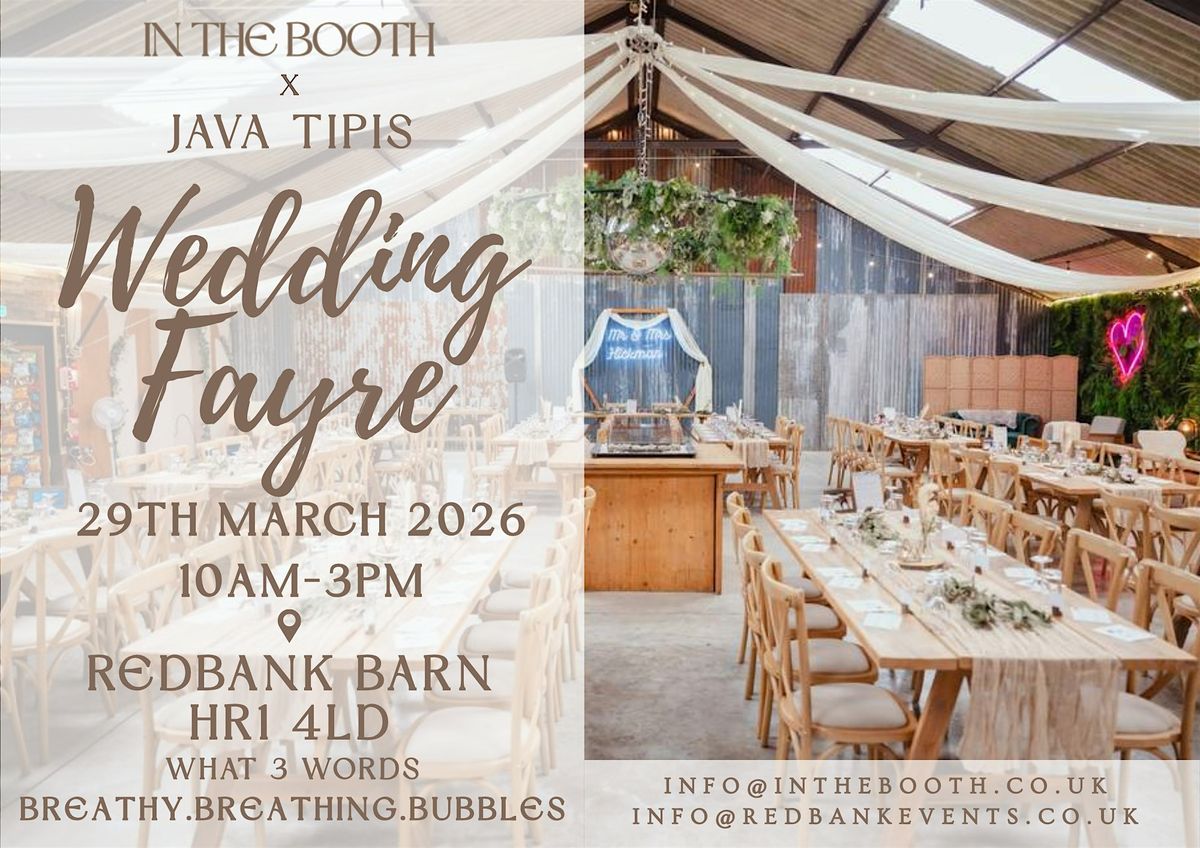 Discover the perfect blend of inspiration, creativity and celebration at our Wedding Fayre, taking place at the beautiful Redbank from 10:00am to 3:00pm. Whether you’re newly engaged or putting the final touches on your plans, this exciting event is designed to help you shape your dream wedding day.
