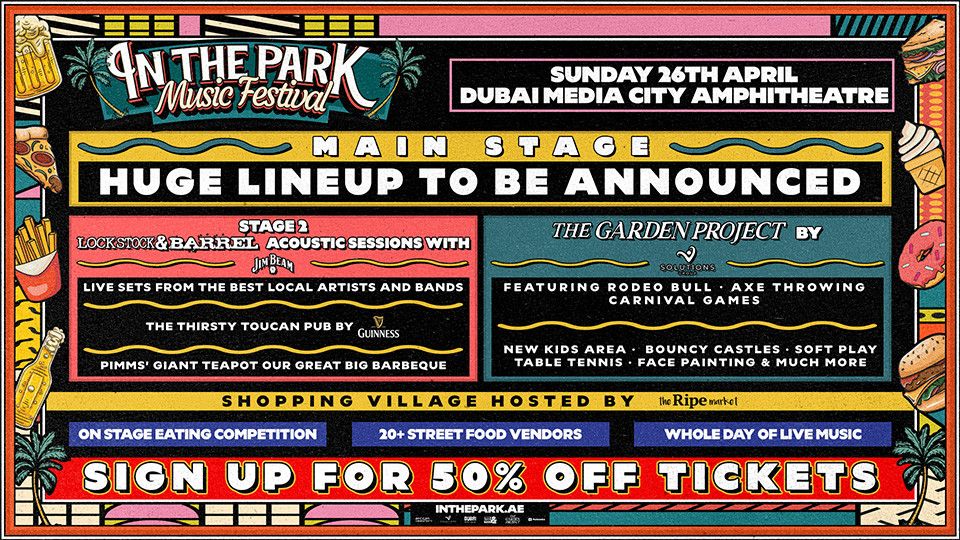 - In the Park Festival makes it's highly anticipated return to Dubai this April. The festival promises an unforgettable experience with a world-class lineup of artists, delicious pub grub, and an exciting family-friendly atmosphere. Alongside the entertainment, In the Park will feature an array of activity across the site, and some brand new areas and features for this year’s event.