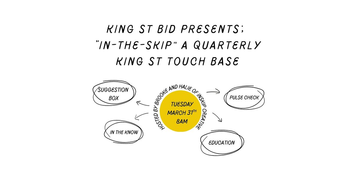 Brought to you by the King St Business Improvement District. Brooke and Halie of Inskip Creative present 'In-The-Skip' a quarterly King St touchbase for building owners, business owners and operators. We will discuss all things King St, including: what's going on in the city, topic focused community feedback, educational seminars and workshops, as well as a suggestion box for any additional feedback you'd like to give the BID.