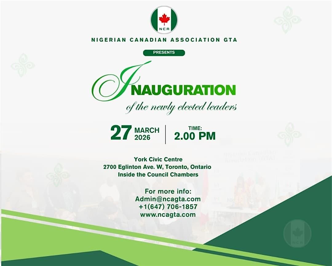 Nigerian Canadian Association GTA, it’s a new dawn and we are inviting everyone to come and participate in the Inauguration Ceremony.About this Event