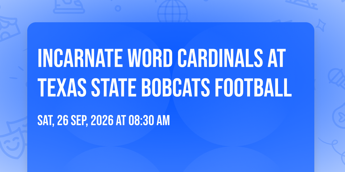 π Location: 29.8921, -97.9266π Journey into wonder at Incarnate Word Cardinals at Texas State Bobcats Football, where extraordinary experiences await around every corner! ποΈ Set against the backdrop of UFCU Stadium in dynamic San Marcos, TX, this event promises to exceed all expectations. π Join us on September 26th, 2026 at 08:30 AM for a celebration that combines innovation, entertainment, and community spirit in perfect harmony. β¨ There will be an atmosphere where memories are made and stories come alive, ensuring every guest experiences something truly remarkable. π This is more than just an event; it's a journey into the extraordinary!