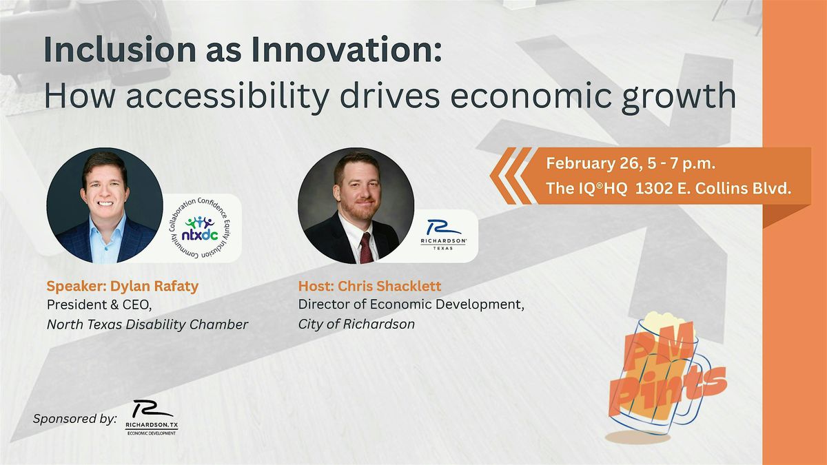 Topic: Join us for an engaging conversation with Dylan Rafaty, President and CEO of the North Texas Disability Chamber, as we explore how accessibility, innovation, and inclusion are driving the future of economic growth across North Texas.