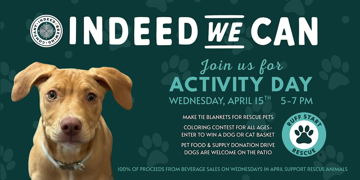 Not able to join us for Activity Day? 100% of proceeds from beverage sales on Wednesdays in April support rescue animals at Ruff Start Rescue.