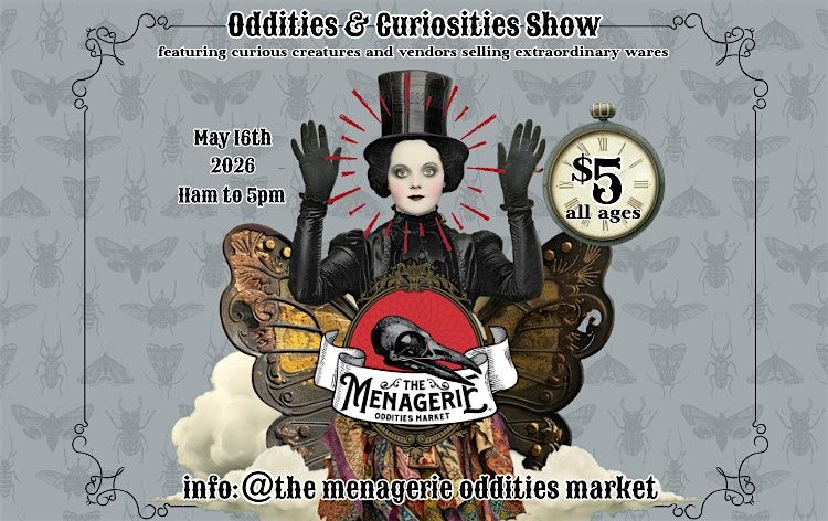 Follow us on socials to check out upcoming events and preview artist wares. IG and FB: @themenagerieodditiesmarket or www.themenagerieodditiesmarket.com