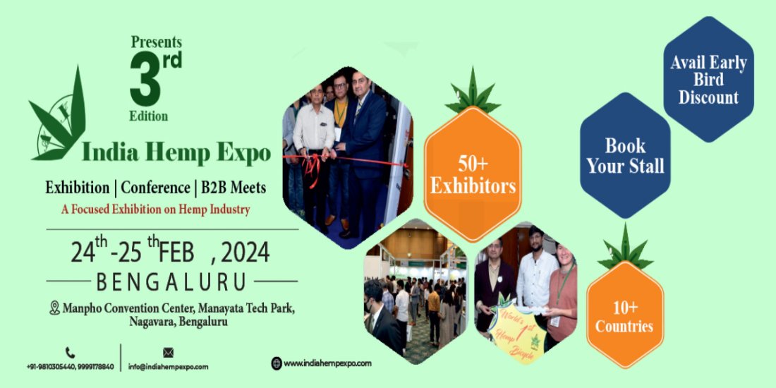 The Third edition of the India Hemp Expo - the biggest gathering of hemp manufacturers traders doctors and stakeholders is slated to be held on 24th & 25th Feb 2024 at Manpho Convention Center Manayata Tech Park Nagavara Bengaluru.