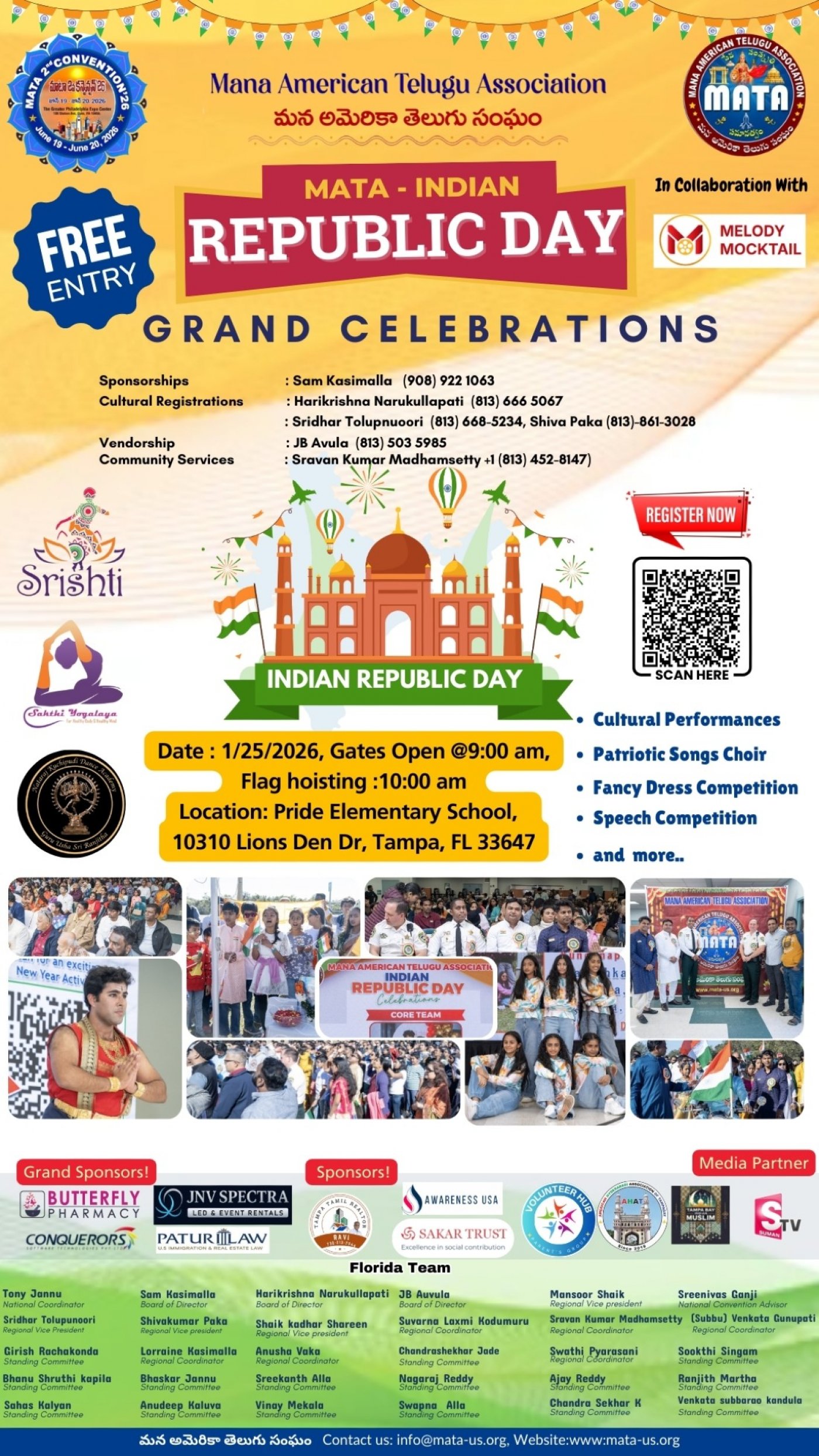We are excited to invite everyone to the most Spectacular Republic Day event in Florida! This is a free event open to all—bring your friends family and neighbors!