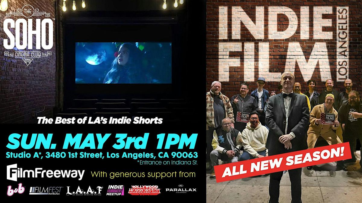 Join us for the latest, exciting season of INDIE FILM LA. Screening the best shorts in L.A. and Southern CA. See an eclectic mix of genres and styles at the SOHO CINEMA CLUB. All presented by the filmmakers in question. All filmmakers introduce their work to an audience of their peers and like-minded filmmakers.