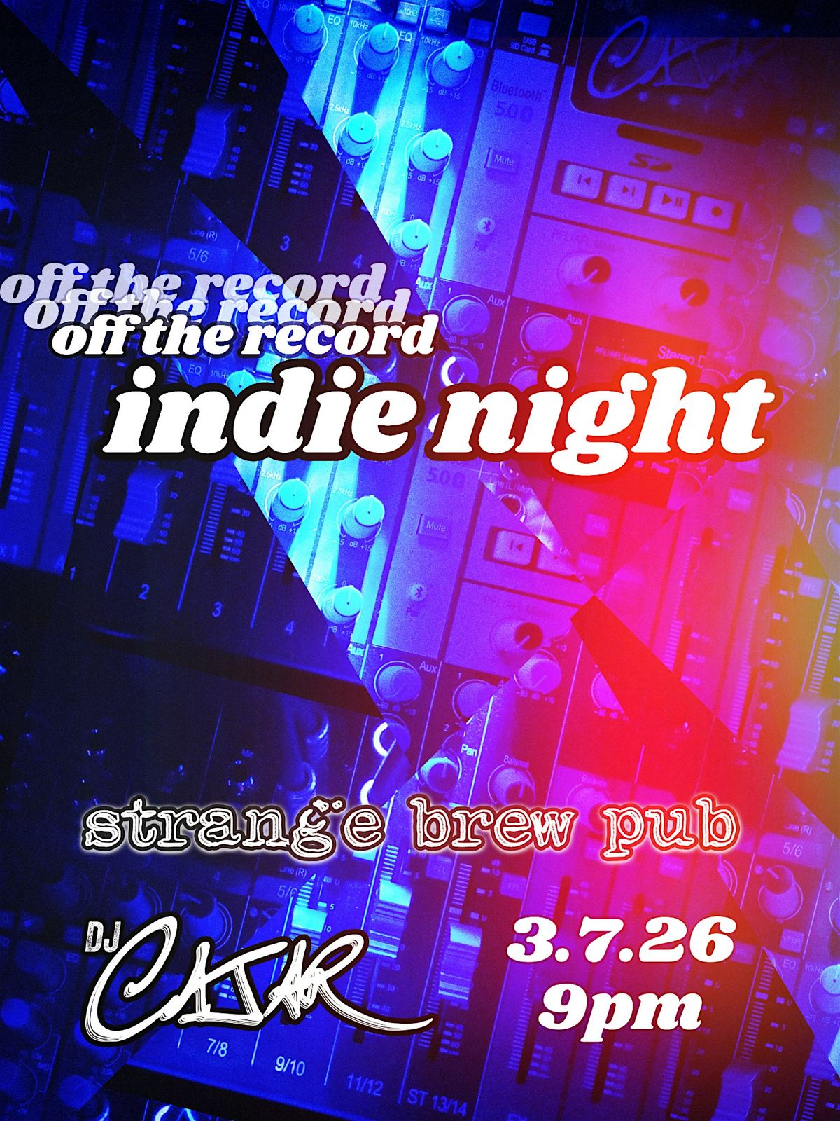 DJ Cajar presents Indie Night | Off The Record... a dance party featuring an electric underground theme of Indie Rock, Indie Pop, Alternative, Retro Classics, Hipster Sleaze!