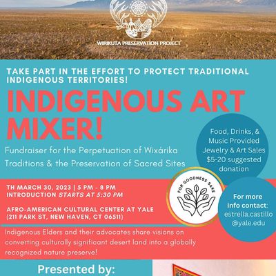 Members of the Yale BIPOC Grad Collective, Yale Life Worth Living teaching team, and the Wirikuta Preservation Project (WPP) invite you to a special art fundraiser honoring Wixráika Elders' visions to preserve sacred medicines and sites!