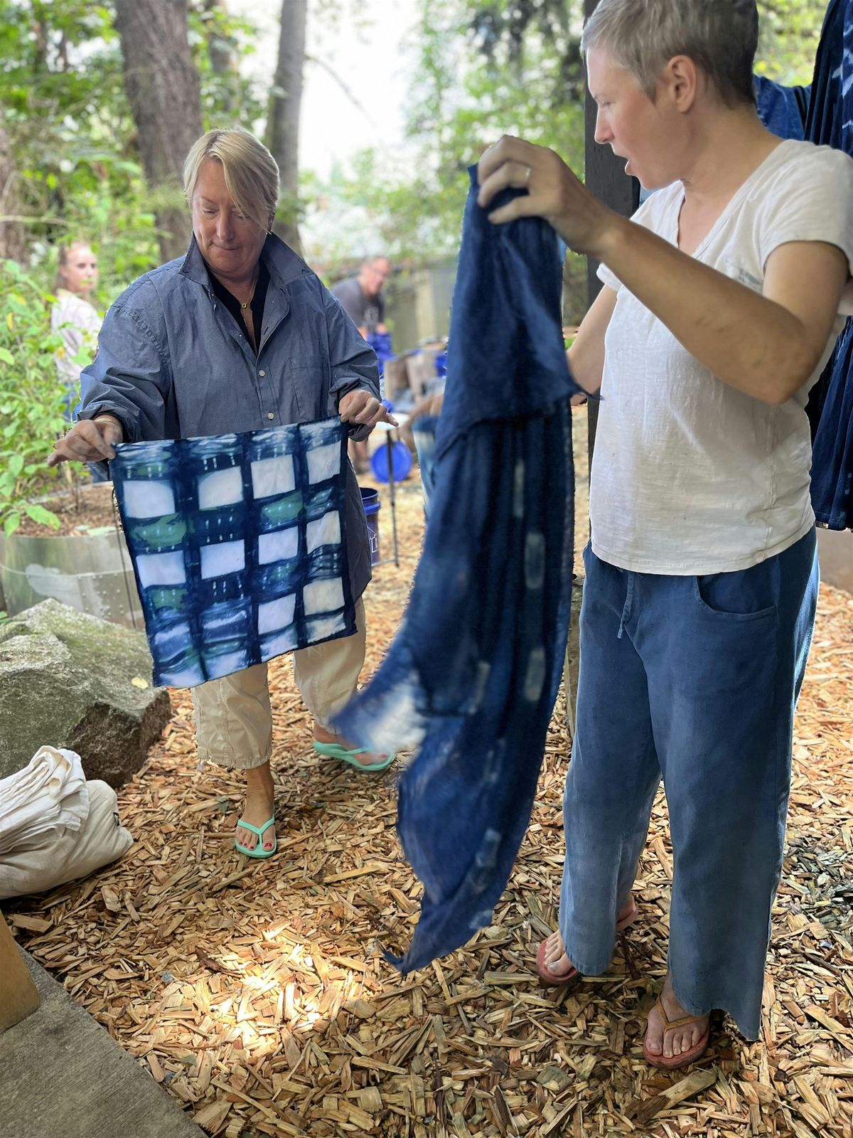 We’ll be exploring getting subtle shades of blue by overdyeing and re-dipping our pieces. This is a basic indigo class, not an in-depth Shibori class. I'll be covering several basic fun patterns and leaving you with hours of time to explore and experiment.